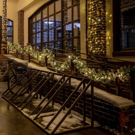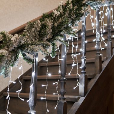 Заснеженный еловый шлейф длиной 2,7 метра представляет собой композицию из сплетенных между собой 228 хвойных веточек, выполненных из ПВХ. На иголки нанесена белая краска, имитирующая сверкающий на морозе иней. Декоративное изделие станет прекрасным украшением вашего дома в новогодние праздники, дополнит оригинальную интерьерную или уличную композицию. Гибкая основа из прочного полимера позволяет создавать сложные фигуры.