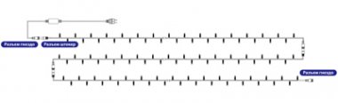 Гирлянда "дюраплей" outdoor, степень влагозащиты IP54, 1mодуль = 4m, потребление 1mодуля - 24W, шаг ламп 10cm, максимальная длина одной гирлянды 80m, ресурс ламп 25000 часов. Max количество гирлянд подключаемых в одну цепь - 6