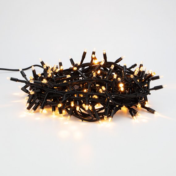 Гирлянда «Кластер» с большим количеством ламп позволит выигрышно декорировать светом натуральные и искусственные ели, хвойные гирлянды и композиции, а также подойдет для оформления интерьера дома, рабочего места, витрины магазина. Гирлянда прекрасно подходит для использования как внутри помещения, так и снаружи, благодаря высокой степени пылевлагозащищенности. Объемная светящаяся гирлянда представляет собой скопление сверкающих огоньков вокруг оси – провода. Данная гирлянда имеет длину 10 м, на которой равномерно расположено 200 диодов теплого белого цвета свечения.