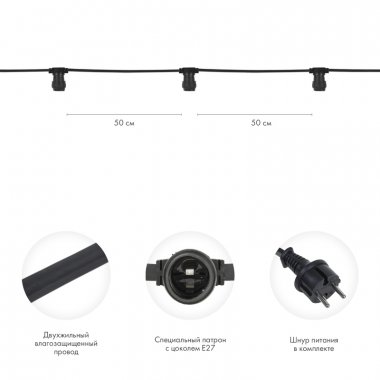 Данная гирлянда имеет 2 жилы. Расстояние между патронами 50 см.