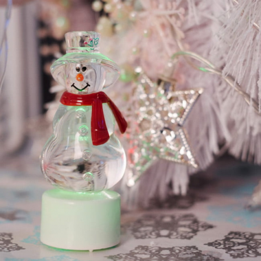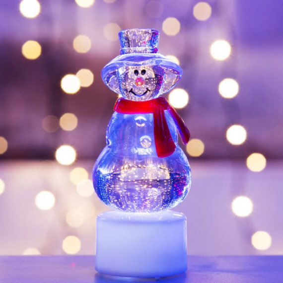 Светодиодная фигурка на подставке "Снеговик с шарфом" станет прекрасным украшением домашнего интерьера, рабочего стола или послужит просто символичным новогодним комплиментом. фигурка работает от батареек LR44 (в комплекте), плавная смена цвета (RGB) создаст приятное праздничное настроение.