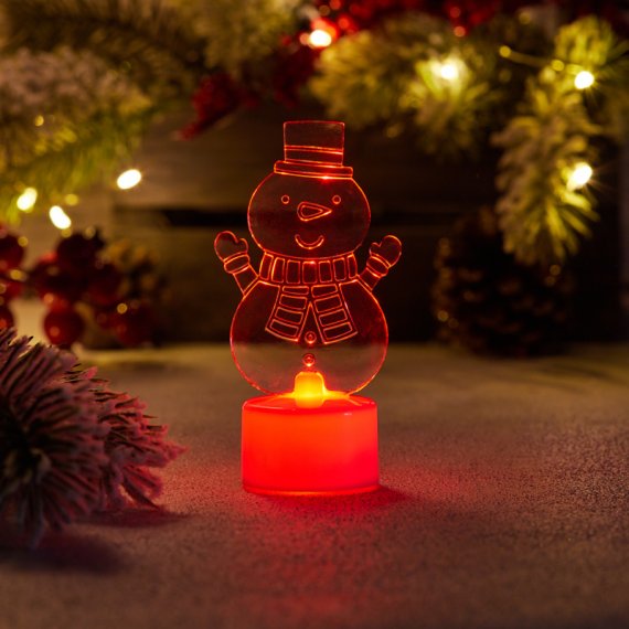 Светодиодная фигурка на подставке "Снеговик с шарфом" станет прекрасным украшением домашнего интерьера, рабочего стола или послужит просто символичным новогодним комплиментом. фигурка работает от батареек LR44 (в комплекте), плавная смена цвета (RGB) создаст приятное праздничное настроение.