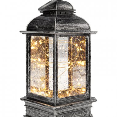Декоративный светильник «Сияние» высотой 24 см выполнен в цвете серый металлик с эффектом состаренной поверхности. Прозрачная колба, наполненная специальной жидкостью, подсвечивается 18 диодами, которые излучают приятный белый свет теплого оттенка. Серебристое конфетти наполняет светильник великолепным сиянием, заставляющим подолгу наблюдать за причудливой игрой мерцающих частиц. Изделие получает питание от 4 батареек типа ААА, что делает его мобильным и абсолютно безопасным. В комплект входит USB-кабель, позволяющий подключить фонарь к сети через адаптер.