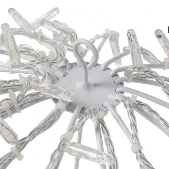 Шар светодиодный используется для оформления праздничных интерьеров жилых и общественных зданий, развлекательных комплексов. Может быть использован на открытых пространствах, в качестве украшения новогодних елей, установленных в местах народных гуляний. Световая фигура на каркасной основе, питание 220-240 В, диаметр 30 см, 120 светодиодов, каждый 5-й диод мерцает, цвет теплый белый.