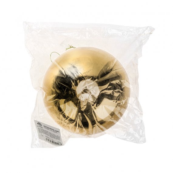 Данный шар имеет диаметр 15 см, цвет золотой глянцевый, выполнен из пластика.