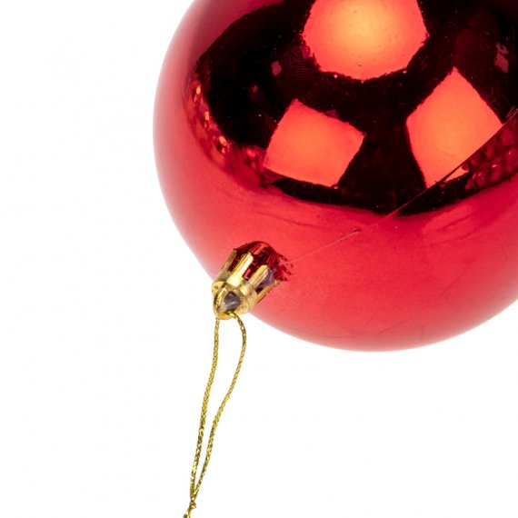 Елочная фигура "Полосатый шар", 20 см, из пластика, цвет красный матовый, полоски красные с блестками