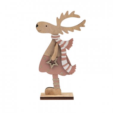 Деревянная фигурка "Рождественский Олень" Розовый 10,5*4*18 см