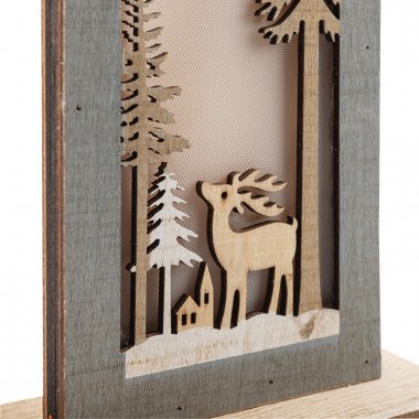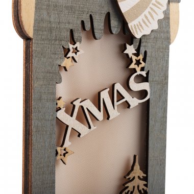 Теплое свечение и деревянное обрамление фигуры создаст уютную атмосферу и подарит ощущение праздника. Может стать прекрасным подарком для ваших близких или интересным интерьерным решением в вашем доме.
