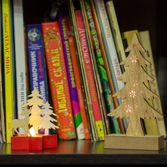 Neon-night Деревянная фигурка с подсветкой Елочка, 9*5*19 см 504-011