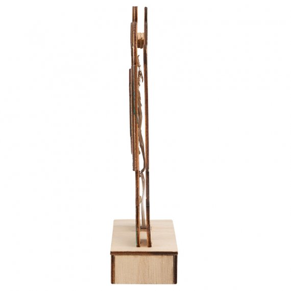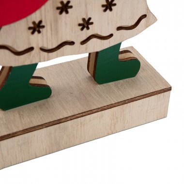 Деревянная фигурка с подсветкой «Дед Мороз» высотой 18 см работает от двух батареек типа ААА, поэтому ее можно разместить в любом уголке вашего дома, не уделяя внимание поиску розеток. Изделие, произведенное из экологичных материалов, станет прекрасным подарком к новогодним праздникам, который вызовет только приятные эмоции. 5 экономичных диодов теплого белого свечения мягко обрамляют композицию, создавая атмосферу тепла и уюта. Фигурка предназначена для использования в помещениях с умеренной влажностью.