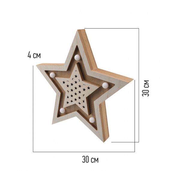 Деревянная фигура с подсветкой «Звезда двойная» 30х4х30 см