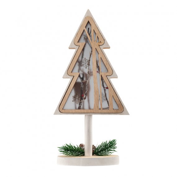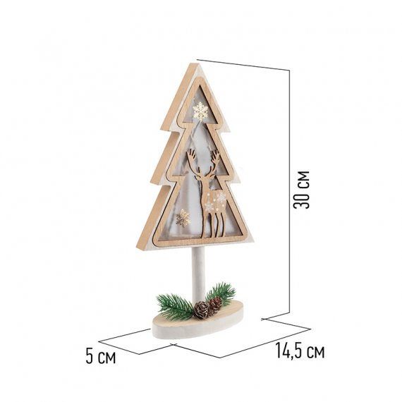 Деревянная фигурка с подсветкой «Елка на подставке» 14,5х5х30 см