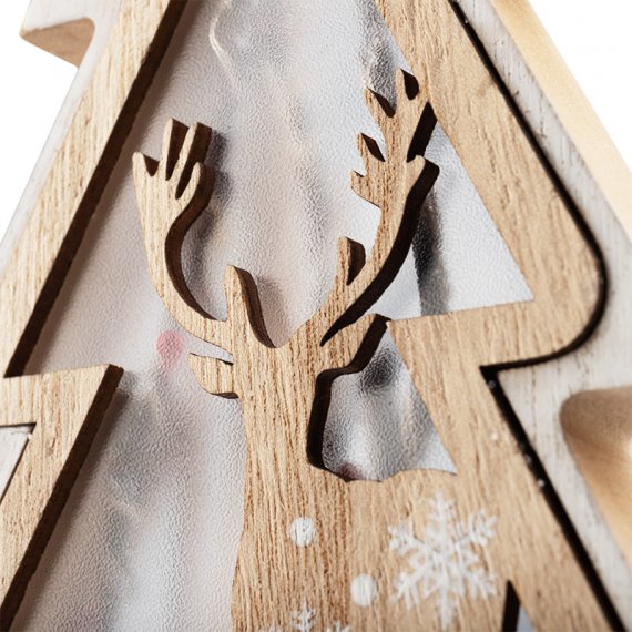 Теплое свечение и деревянное обрамление фигуры создаст уютную атмосферу и подарит ощущение праздника. Может стать прекрасным подарком для ваших близких или интересным интерьерным решением в вашем доме.