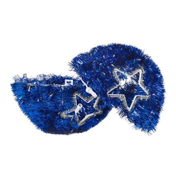 Режим свечения постоянное свечение Срок службы 5 лет Степень защиты IP65 Температурный режим от -40 до +50 Тип и кол-во источников света LED Цвет свечения Белый Мощность 19 Вт Напряжение 230 В Размеры диаметр 40 см Дополнительно Мишура синяя