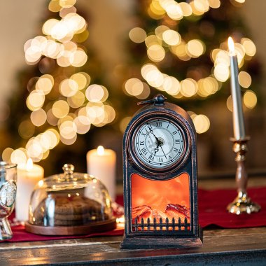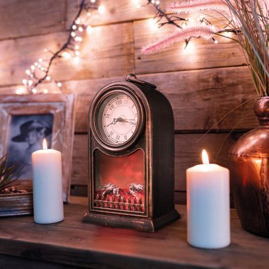Neon-night Светодиодный камин «Старинные часы» с эффектом живого огня 14,7x11,7x25 см, 511-021