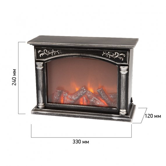 Светодиодный камин "Классика" с эффектом живого огня 33х12х24 см, батарейки 3хС (не в комплекте) или от USB (в комплекте)