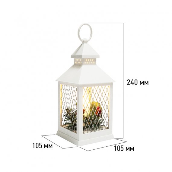 Декоративный фонарь со свечкой, белый корпус, размер 10.5х10.5х24 см, цвет ТЕПЛЫЙ БЕЛЫЙ