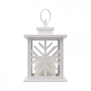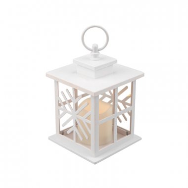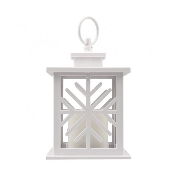 Декоративный фонарь со свечкой, белый корпус со снежинкой, размер 12х12х18 см, цвет теплый белый