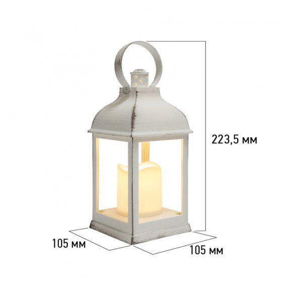 Декоративный фонарь со свечкой, белый корпус, размер 10.5х10.5х22,35 см, цвет ТЕПЛЫЙ БЕЛЫЙ