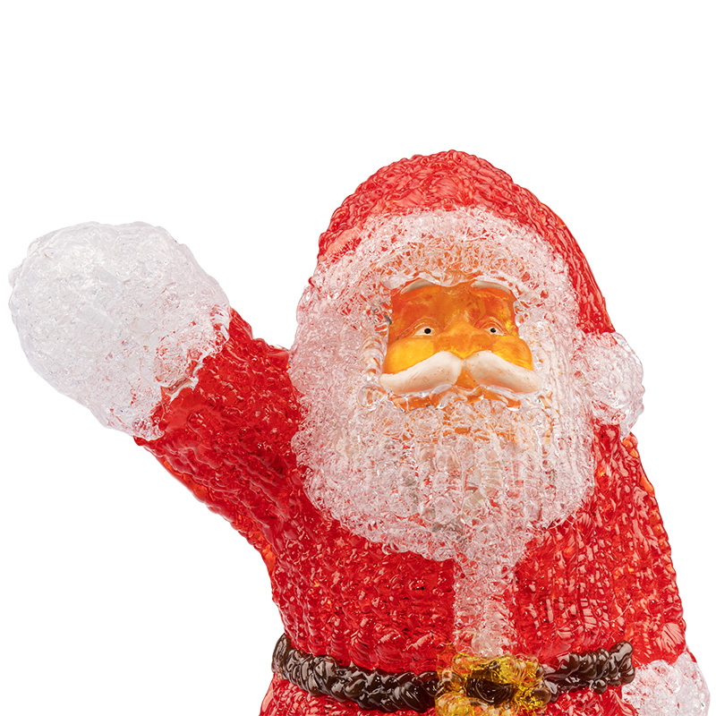 Акриловая светодиодная фигура "Санта Клаус приветствует" высотой 30 см, светящаяся более чем 40 ярких диодов, выполнена по специальной технологии нанесения акрила имитируя шерстяной покров реального животного. Она позволит Вам создать ту самую, настояющую новогоднюю атмосферу и принести сотни радостных улыбок.