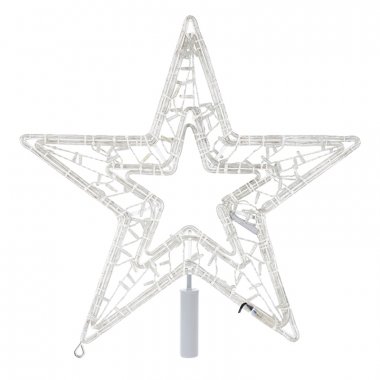 Звезда на елку стала неотъемлемым символом Рождества и Нового Года, ведь именно свет звезды ознаменовал рождение Христа и указал волхвам путь к младенцу. Уличная или домашняя елка всегда выглядит наряднее и эффектнее с верхушкой, украшенной яркой звездой. Благодаря съемной трубе и закрепленному на каркасе кольцу для подвешивания, можно с легкостью установить звезду не только на елке, но и на фасаде торгового центра или жилого здания. Прочный каркас из качественного метала и яркое свечение долговечных светодиодов будут радовать несколько сезонов подряд. Размер звезды: 80 см Цвет свечения диодов: белый, с серебристыми вставками Питание: от сети 230 В