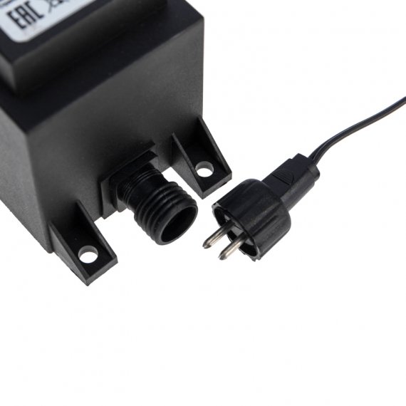Трансформатор 220В - вход, 24В - выход, 40Вт Подходит для подключения гирлянды "Нить" 24В (5 шт.= 50 м) Длина шнура питания: от трансформатора до вилки 100 см, от трансформатора до разъема подключения 60 см. Размер трансформатора: 93*64*70 мм