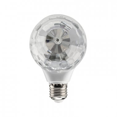 Светодиодная диско-лампа представляет собой устройство для создания эффекта светомузыки. Выполнена из пластикового корпуса в виде привычной лампочки, содержит внутри моторчик, который создает динамическое вращение потока разноцветных лучей.