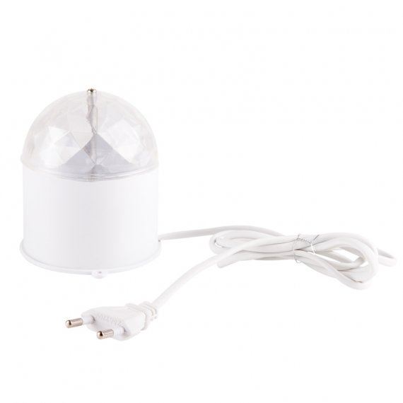 Светодиодная диско-лампа представляет собой устройство для создания эффекта светомузыки. Выполена из пластикового корпуса в виде цилиндра с прозрачным преломляющим куполом сверху. Специальные отверстия в корпусе позволяют смонтировать диско-лампу на стену или потолок. Поставьте такую диско-лампу в любое удобное для вас место в помещении, дома или на даче и включите ее в сеть 220В. Праздничное настроение для Вашей вечеринки обеспечено!