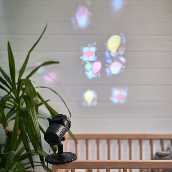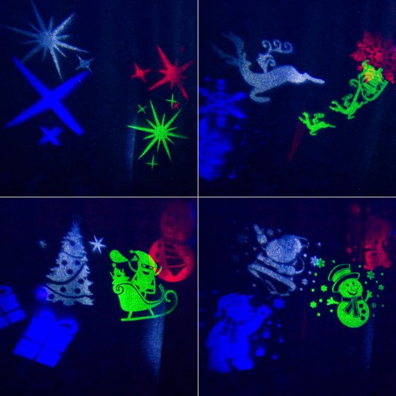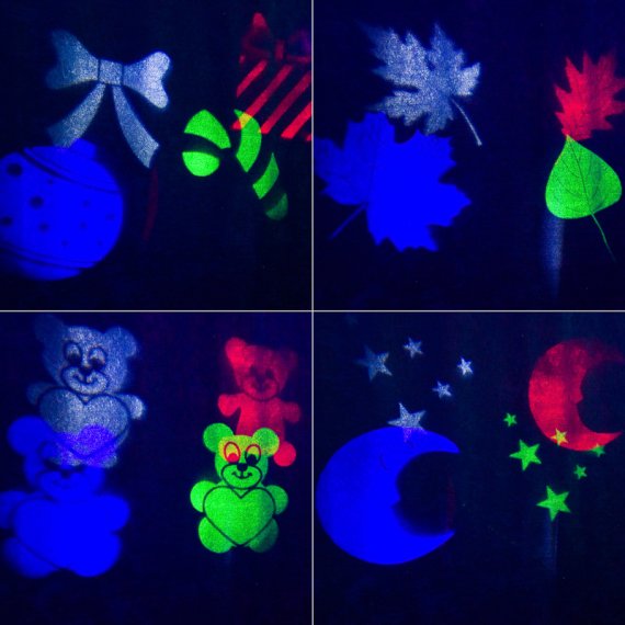 Светодиодный проектор - устройство для создания праздничной атмосферы, которое позволяет проецировать различные изображения на поверхности как дома, так и на улице. В комплекте идет 12 слайдов, среди которых вы подберете подходящий под соответствующую тематику мероприятия: будь то вечеринка, новый год и т.д. Проектор также порадует ваших детей, став отличным ночником, ведь при работе он совершенно бесшумен и безопасен благодаря понижающему трансформатору 12В, который идет в комплекте.